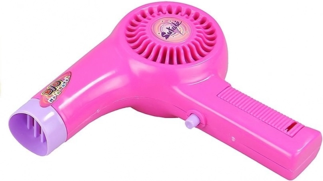Der mit 1× AA 1,5 V (nicht enthalten) betriebene Föhn erzeugt einen sanften Luftstrom und realistische Geräusche – ideal für glaubwürdiges Friseursalon-Spiel.