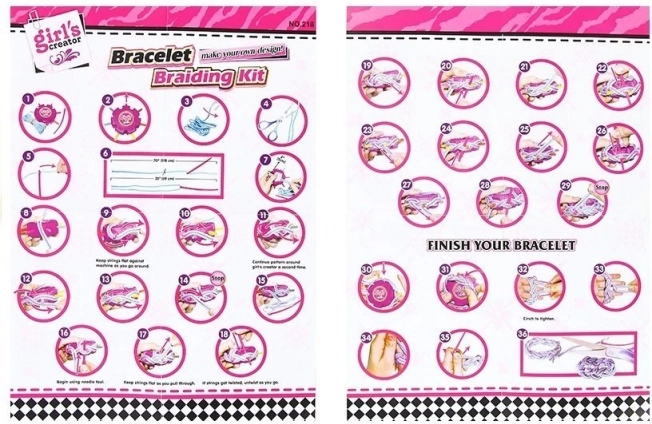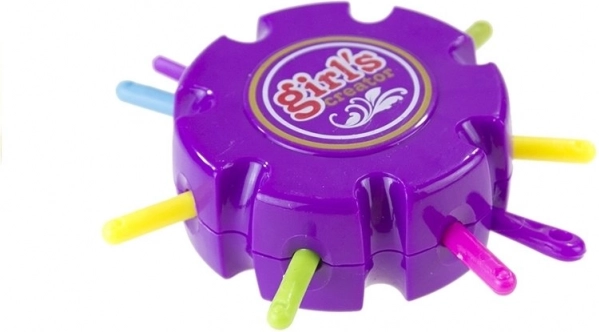 Zum Set gehört ein rundes Hilfsgerät, das das Flechten von Armbändern erleichtert und beim Erstellen komplexer Muster hilft.
