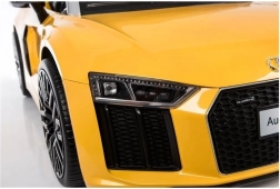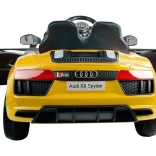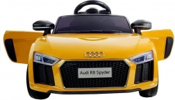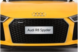 Elektrisches Kinderauto Audi R8 Spyder ist für Kinder bestimmt und bietet ein einzigartiges Fahrerlebnis. Das Aussehen des Autos kopiert das legendäre sportliche Design des Audi R8 Spyder, einschließlich stilvoller gelber Lackierung, authentischer LED-Scheinwerfer und eines markanten Frontgrills.