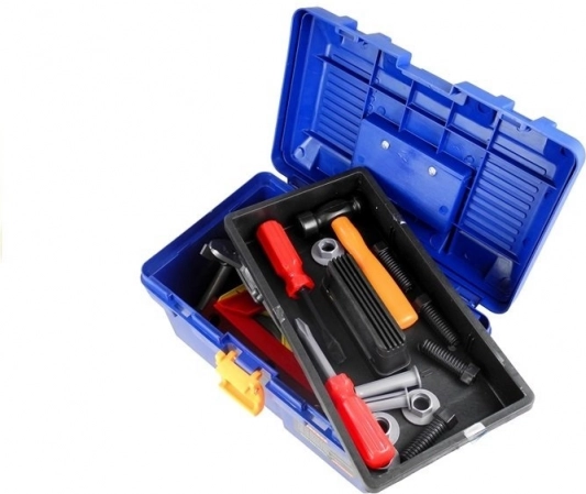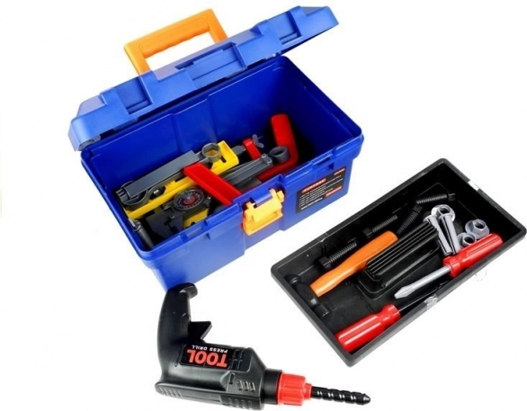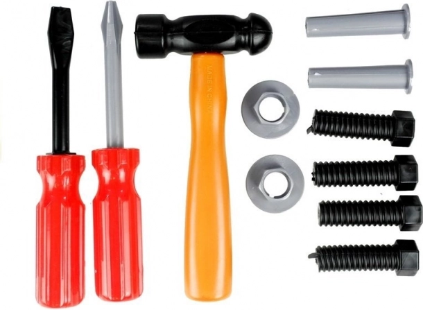 Dieses Komplettset für kleine Heimwerker enthält alles, was man zum Reparieren und zum Rollenspiel als Handwerker braucht. Der leichte und robuste Koffer mit Fach bewahrt alle Teile übersichtlich auf, während realistisch aussehende Kunststoffwerkzeuge Kinder sicher mit der Welt des Werkzeugs vertraut machen.