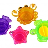 Fisch, Krabbe, Seestern und Schildkröte lassen sich ineinanderstecken. Fördert die Feinmotorik sowie das Erkennen von Formen und Farben.
