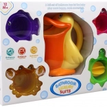 Ein Badespielzeug, das Kinder und Eltern begeistert. Der Pelikan mit praktischem Griff schöpft und gießt Wasser, während die vier bunten Tierbecher zum Schöpfen, Umfüllen und Ineinanderstapeln verwendet werden können. Dank sicherem Kunststoff, glatten Kanten und verspieltem Design ist das Set perfekt für tägliche Wasserabenteuer.
