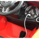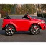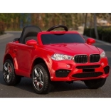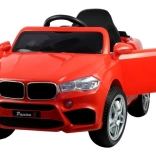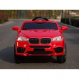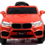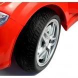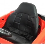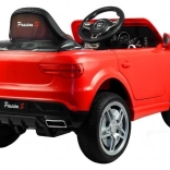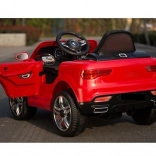 Das rote elektrische Auto ist sorgfältig gestaltet, um wie ein echter Luxuswagen auszusehen, mit Details wie Lichtern und öffnenden Türen.