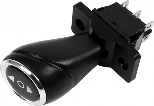 Zuverlässiger Dreistellungsschalter für Elektrofahrzeuge ermöglicht eine einfache Steuerung der Fahrtrichtung: vorwärts, Stop und rückwärts. Dank der nicht selbsttätig rückstellenden Konstruktion bleibt der Hebel in der gewünschten Position, was Komfort und Sicherheit bei der Verwendung erhöht.
