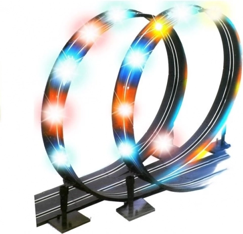 Zwei Schleifen mit farbiger LED-Beleuchtung verleihen den Rennen Dynamik und visuelle Effekte. Perfekt für Abendfahrten und spannende Fotofinishes.