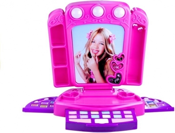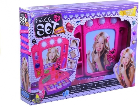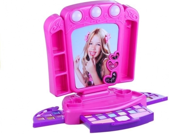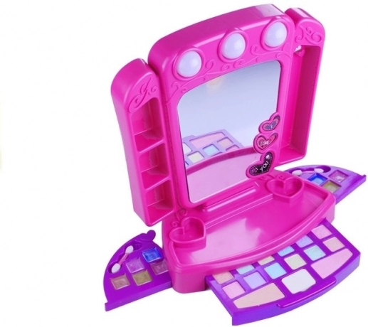 Rosa Kinderschminktisch mit Kosmetik und Lichtern
