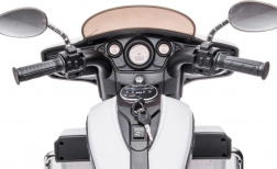Lenker mit Griffen, Spiegel, Frontscheibe und übersichtliche Instrumente schaffen ein authentisches Fahrerlebnis wie auf einem echten Motorrad.
