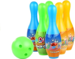 Bowling-Set für Kinder ist aus robustem Kunststoff gefertigt, was ein sicheres Spiel sowohl drinnen als auch draußen gewährleistet. Es zeichnet sich durch bunte Farben aus, die Aufmerksamkeit erregen und zu aktivem Spiel anregen.
