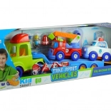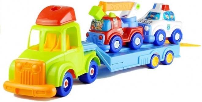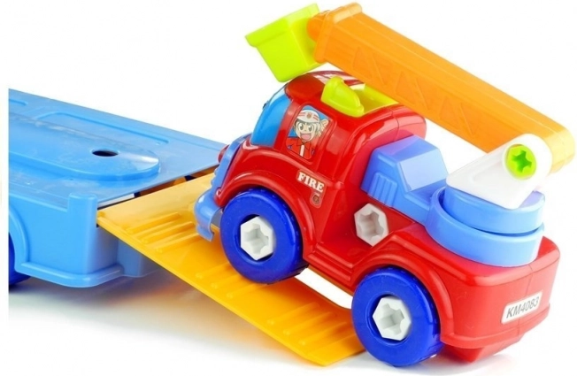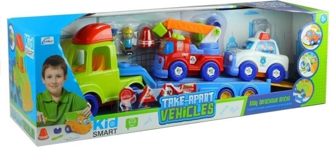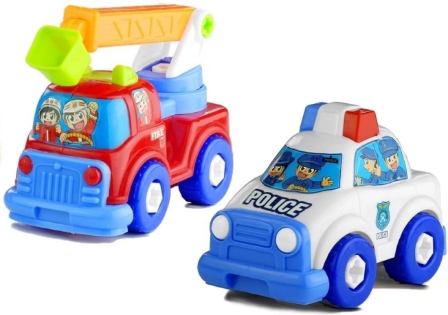 Dieses farbenfrohe Fahrzeugset, das das Auseinandernehmen und Zusammenbauen ermöglicht, stimuliert die Kreativität und die motorischen Fähigkeiten der Kinder. Es umfasst einen Transporter sowie einen Polizei- und Feuerwehrauto, die einfach mit Plastikinstrumenten auseinandergeschraubt werden können. Dieses interaktive Spielzeug kombiniert die Möglichkeit gemeinsamer Spielmomente mit Eltern oder Geschwistern und gleichzeitig unabhängiges Spielen.