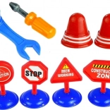 Das Set enthält Figuren, Werkzeuge und Verkehrsschilder, die den Kindern spielerisch die Welt der Reparaturen und grundlegende Werkzeuge näherbringen.