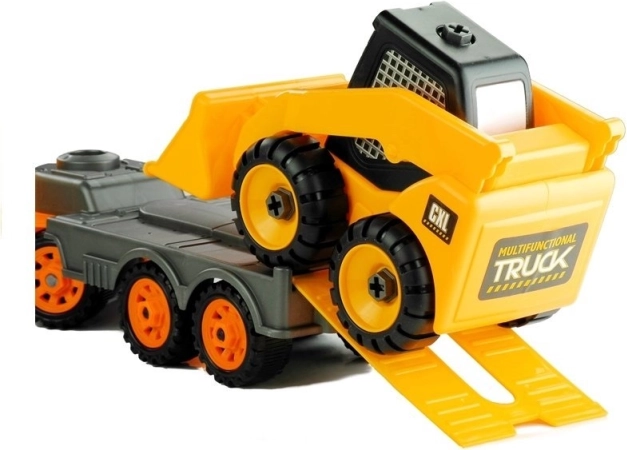 Set aus Baufahrzeugen ist ein ideales Geschenk für Kinder, die von Baumaschinen fasziniert sind. Es kombiniert traditionelles Spielen mit Autos mit der Möglichkeit des eigenständigen Montierens und Demontierens einzelner Teile, was stundenlangen Spaß bietet. Die bunte Gestaltung der Fahrzeuge imitiert realistische Baumaschinen und erweitert die kindliche Vorstellungskraft.