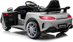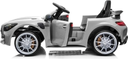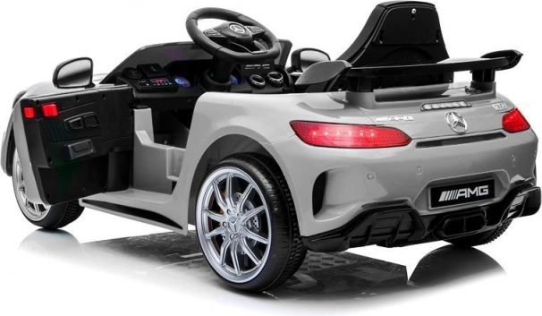 Das lizenzierte Auto MERCEDES GT R überzeugt mit muskulöser Silhouette, Sportspoiler und ikonischem Kühlergrill. Dank der lackierten Oberfläche in glänzendem Silber wirkt es wie ein echter Sportwagen. Der Innenraum bietet ein beleuchtetes Armaturenbrett, ein Lenkrad mit Hupe und eine übersichtliche Bedienung.