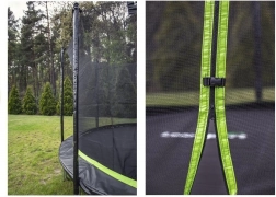 Das LEAN SPORT PRO Trampolin mit einem Durchmesser von 305 cm ist die ideale Wahl für den Garten. Das hohe Sicherheitsnetz (ca. 180 cm) hält Springer sicher, während die exakt gewählte Federanzahl den Sprüngen eine großartige Dynamik verleiht. Der robuste Rahmen aus hochwertigen, zertifizierten Materialien ist korrosionsbeständig und trotzt schlechtem Wetter, sodass Sie das Trampolin nicht bei jeder Wetteränderung abbauen müssen.