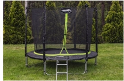 Der Rahmen aus zertifizierten Materialien ist korrosions- und witterungsbeständig. Das Trampolin muss bei Wetterwechsel nicht jedes Mal abgebaut werden.