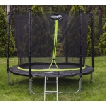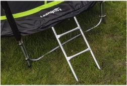 Bequemen Zugang bietet die zweistufige Leiter und die optimale Höhe der Sprungfläche über dem Boden (ca. 76 cm). Das Trampolin ist CE-zertifiziert und eignet sich für Kinder ab 3 Jahren sowie Erwachsene, mit einer Tragfähigkeit von bis zu 150 kg. Dank der übersichtlichen Verpackung und des einfachen Verbindungssystems ist die Montage schnell und unkompliziert.