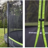 Ein Netz mit einer Höhe von ca. 180 cm, verstärkte Pfosten und eine feste Befestigung schützen vor dem Sturz außerhalb der Sprungfläche. Kinder und Erwachsene genießen das Springen mit maximaler Sicherheit.