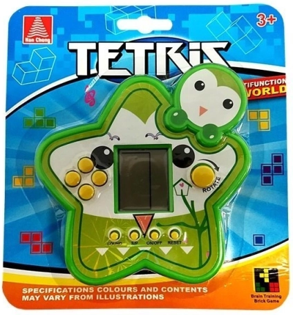 Das elektronische grüne Gehäuse ist sehr leicht und kompakt und macht das Spiel zur idealen Taschenvariante, die Sie überallhin mitnehmen können. Es besteht aus einem Display und gelben Tasten, die die Spielfunktionen steuern. Sie können das Spiel ein- und ausschalten, die Töne deaktivieren oder das Spielfeld zurücksetzen, um das Stapeln der Blöcke von vorn zu beginnen. Die übrigen Tasten dienen der Navigation im Spiel und dem Drehen der Blöcke. Diese handliche, grüne Version des elektronischen Spiels verschönert die Zeit sowohl für Kinder als auch für Erwachsene. Perfekt geeignet für Pausen zwischen Unterrichtsstunden, im Bus oder zu Hause beim Entspannen.