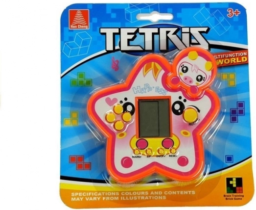 Das elektronische Spiel in einem orangefarbenen Gehäuse ist sehr leicht und dank der kompakten Abmessungen ideal zum Mitnehmen. Es verfügt über ein Display und gelbe Tasten zur Steuerung der Spielfunktionen. Die Tasten ermöglichen das Ein- und Ausschalten des Spiels, das Stummschalten der Töne und das Zurücksetzen des Spielfelds für einen neuen Start. Weitere Tasten dienen der Navigation im Spiel und dem Drehen der Blöcke. Die Taschenversion des elektronischen Spiels ist ein idealer Begleiter für freie Momente – ob im Bus, zu Hause oder während einer Pause zwischen Ihren Aufgaben.