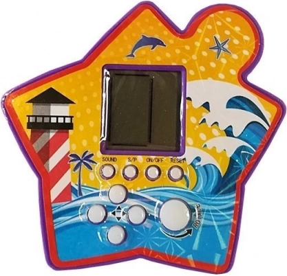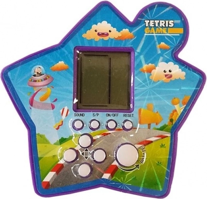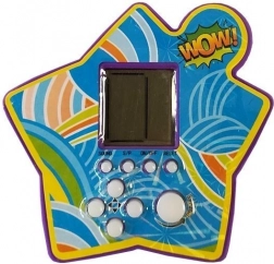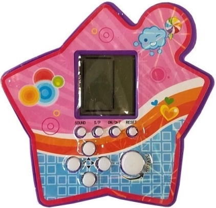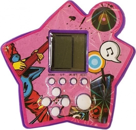 Das elektronische Spiel in Sternform ist sehr leicht und dank seiner kompakten Größe können Sie es leicht mitnehmen. Es enthält ein Display und weiße Tasten für Spielfunktionen wie Start, Pause, Stummschaltung oder Reset.