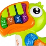 Wir präsentieren das Kinderklavier in Form eines fröhlichen Papageis, das jeden Tag Ihres Kindes erhellt. Dank der Musiktasten und Lichteffekte wie 'DO', 'RE' und 'MI' stimuliert das Spielzeug die Sinne Ihres Kindes und fördert sein Gehör und das Sehvermögen und unterstützt seine Kreativität.