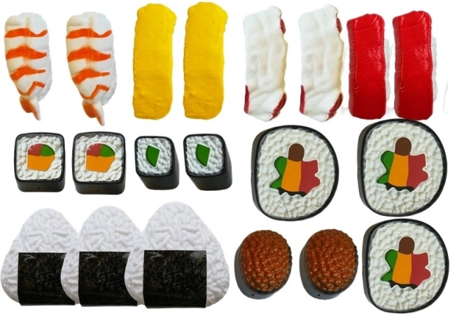 Bereiten Sie für die Kinder ein stilvolles „Sushi-Erlebnis“ mit der japanischen Spezialität vor. Die realistisch verpackte Sushi-Box dient nicht nur zur Aufbewahrung, sondern auch zum Servieren. Im Set finden Sie beliebte Sushi-Arten – Hosomaki, Futomaki, Nigiri und Reis-Onigiri – ideal, um kleine Sushi-Meister spielen zu lassen.