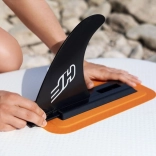 Die robuste Drop‑Stitch-Konstruktion ermöglicht wiederholtes Auf‑ und Abpumpen ohne Formverlust. Ein praktischer mittiger Tragegriff erleichtert den Transport, die mittige abnehmbare Finne verbessert die Spurtreue, und im Set ist auch eine Spiral-Leash für mehr Sicherheit enthalten.