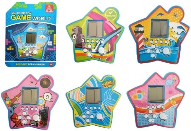 Genießen Sie zeitlosen Spielspaß mit der Taschenkonsole in Sternform. Ein kleines LCD-Display, übersichtliche weiße Tasten und ein farbenfrohes Design machen diese Konsole zum idealen Begleiter für freie Momente. Das Spiel Tetris fördert auf natürliche Weise logisches Denken, Planung und schnelle Entscheidungen – mit jeder gelöschten Reihe nehmen Tempo und Spannung zu.