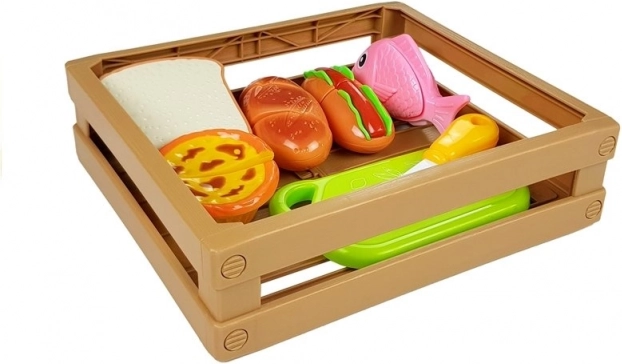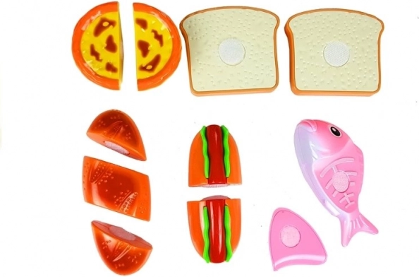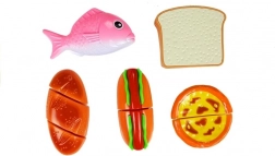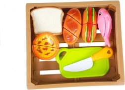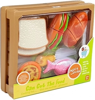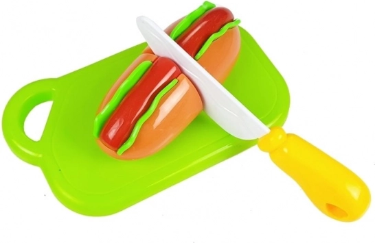 Entdecken Sie die spaßige Welt des Kochens mit dem Kinderset aus Lebensmitteln, bei dem jedes Teil mit Klett verbunden ist. Kinder können einen Hotdog zubereiten, Fisch servieren, Backwaren schneiden oder einen Cupcake „backen“. Das sichere Kunststoffmesser und das Brettchen ermöglichen ein realistisches, aber völlig ungefährliches Schneiden.