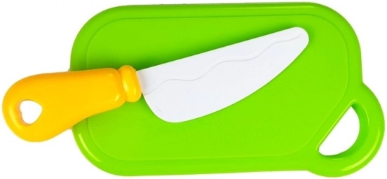 Das sichere Kunststoffmesser und das Brettchen ermöglichen echtes Kochspiel ganz ohne Verletzungsgefahr. Ideal für die ersten Kochversuche.