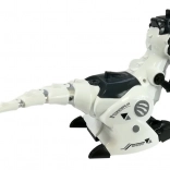 Entdecken Sie die aufregende Welt der Dinosaurier mit dem mechanischen, ferngesteuerten T-Rex. Der Dinosaurier verfügt über auffällige Leuchtelemente und gibt realistische Geräusche von sich, die die Spielatmosphäre intensivieren. Dank robuster Konstruktion und der modernen Kombination aus Weiß, Schwarz und Grau wirkt er wie ein futuristisches Wesen.
