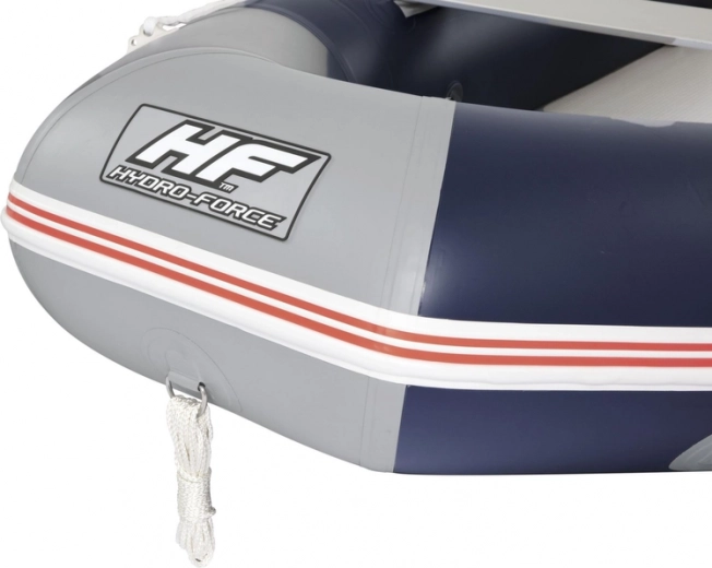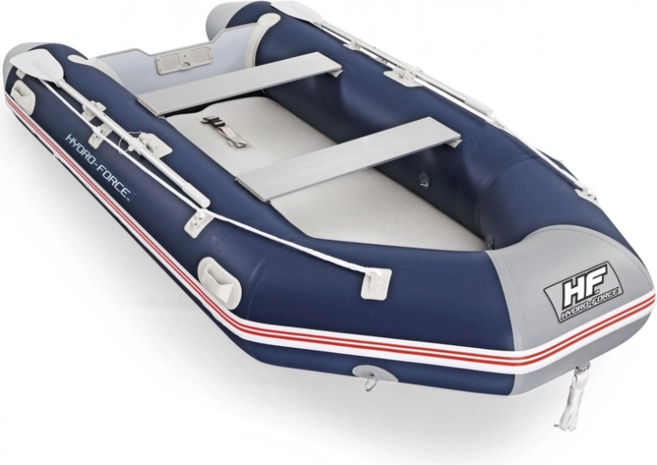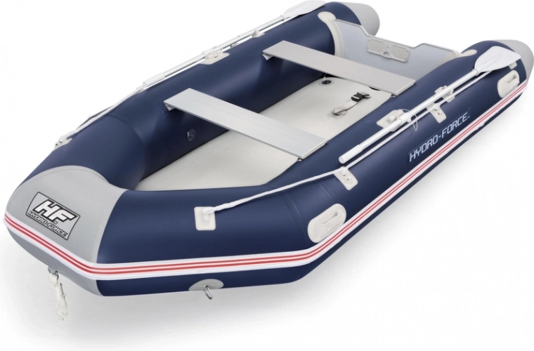 Ein Ausflug aufs Wasser ist die ideale Möglichkeit, die Freizeit gemeinsam mit den Liebsten zu verbringen. Um diese unbeschwerte Zeit noch abwechslungsreicher zu gestalten, legen Sie sich zusätzliches Zubehör für den Pool zu. Aufblasbares Sportboot für 4 Personen, ideal zum Angeln oder für Fahrten auf offenem Wasser. Hergestellt aus extrem widerstandsfähigem, dreilagigem, verstärktem Material mit hoher Dichte und Polyestergewebe, das mit robusten PVC-Schichten überzogen ist und so Leichtigkeit und Langlebigkeit gewährleistet. Ein Heckspiegel aus Marine-Sperrholz mit Motorhalterung kann einen Motor tragen (Motor nicht im Lieferumfang enthalten). Der Boden ist so stabil und komfortabel wie bei einem traditionellen Boot und dennoch leicht und witterungsbeständig. Die Konstruktion mit 3 Luftkammern sorgt für ausgezeichnete Stabilität auf dem Wasser und verhindert, dass ein einzelner Durchstich das Boot schnell kentern lässt. An der Bugseite ist ein Stahl-Zugring zum Schleppen und Sichern angebracht. Sicherheitsleinen ermöglichen das Manövrieren des Bootes vom Ufer oder aus dem Wasser an Bord. Zum Set gehört ein Paar zweiteiliger Aluminiumruder, die in die Dollen eingesetzt werden können, um effizient zu fahren.