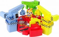 Im Lieferumfang: Karussell, 3 Abdeckungen, gelber, grüner und blauer Kran, 4 Eier, 5 Kugeln, 3 Schokoladen-Attrappen, 3 Keks-Attrappen, 3 Bonbons und 3 Kaugummis.