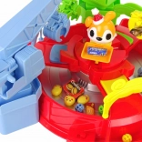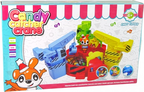Dieser farbenfrohe Süßigkeiten-Greifer bringt die Atmosphäre von Spielhallen direkt zu Ihnen nach Hause. Im Mittelpunkt steht ein drehendes Karussell mit beweglichen „Leckereien“, um das herum drei mechanische Kräne in Grün, Blau und Gelb angeordnet sind. Die Kräne werden mit einer Handkurbel präzise bedient – gewinnt, wer die meisten Teile schnappt!