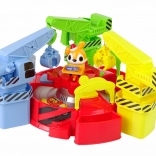 Grüner, blauer und gelber Kran mit Handkurbel ermöglichen Wettkampf mit mehreren Spielern zugleich und trainieren die Hand-Auge-Koordination.