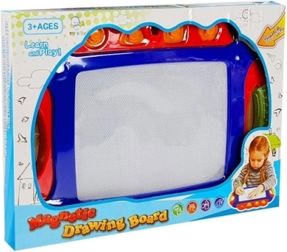 .Die Tafel hat ein großes Display, das es ermöglicht, bunte, unglaublich originelle Bilder zu erstellen, die sich leicht löschen lassen. Unter der Oberfläche des Bildschirms befinden sich Eisenfeilspäne, die nach dem Zeichnen mit dem beiliegenden Spezialstylus das vom Kind erstellte Muster bilden. Die beiliegenden Schablonen erleichtern das Spielen – auf dem Bildschirm kann ein Muster erscheinen, das das Kind nach eigenen Vorstellungen aus dekoriert.