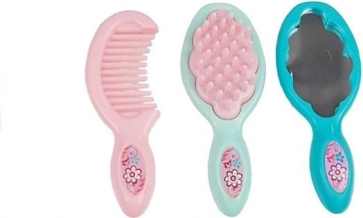 Bürste, Kamm, Spiegel und Lockenwickler laden zum Ausprobieren von Frisuren ein und fördern Feinmotorik und Fantasie.
