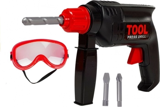 Beim Drücken des Auslösers drehen sich die austauschbaren Bohraufsätze, sodass Kinder sicher „bohren“, schrauben und ihre Geschicklichkeit ohne Risiko trainieren können. Zum Set gehört auch eine Schutzbrille zum Üben korrekter Sicherheitsgewohnheiten. Das Produkt besteht aus hochwertigem, geprüftem Kunststoff und erfüllt die CE.