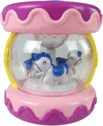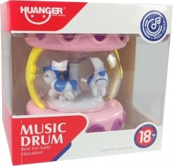 Der Zauber dieser Trommel liegt im inneren Karussell mit Pferdchen, das fesselt und die Aufmerksamkeit hält, während Kinder ihre Koordination mit Hilfe dieses kreativen Spielzeugs entwickeln. Das Spielen mit der Trommel hilft, kleine Finger zu trainieren und unterstützt so später das Erlernen von Fähigkeiten wie Schreiben und logischem Denken.