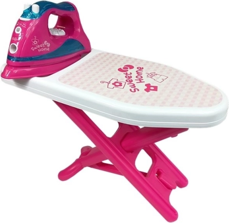 Das Bügelbrett und das Bügeleisen aus Plastik mit 'Sweet Home'-Aufdruck bieten authentischen Spaß.