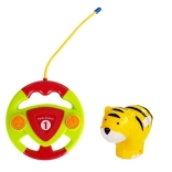 Die Fernbedienung arbeitet auf einer Frequenz von 27 MHz, was Störungen minimiert und einen reibungslosen Betrieb gewährleistet. Der Controller hat die Form eines Lenkrads, das perfekt in die Hände kleiner Kinder passt, und enthält zwei Tasten zur einfachen Steuerung der Bewegung des Flugzeugs.