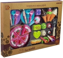 Verwandeln Sie das Kinderzimmer in eine gemütliche Konditorei. Dieses umfangreiche Dessert-Set bietet alles, was Kinder zum Servieren von Torten und Eis benötigen: Torte mit 6 Stücken, Waffeln, Schälchen, Teller sowie einen Tortenheber. Die bunten Farben laden zum Entdecken, Sortieren und Kombinieren ein und fördern so Kreativität und Rollenspiele.