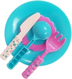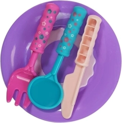 Teller, Gabeln, Löffel und ein Messer in fröhlichen Farben machen jedes Fest zu einem spaßigen Erlebnis und fördern die Selbstständigkeit.