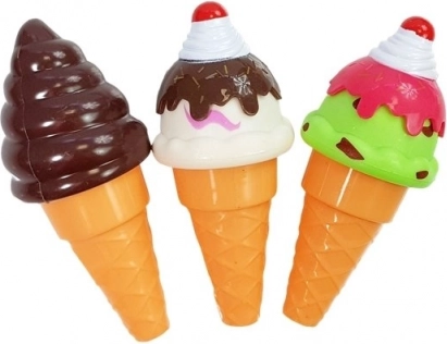 Bunte Waffeln, Schälchen und ein Portionierer ermöglichen das Mischen von Geschmacksrichtungen und das Kreieren von Eiskombinationen nach Lust und Laune.