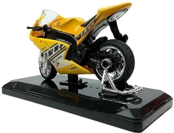 Realistisch gestaltetes Sportmotorrad im Maßstab 1:18 kombiniert Metall und Kunststoff für lange Haltbarkeit und eine tolle Optik. Das detailreiche Design mit verchromten Rädern und Rennaufklebern macht es zu einem attraktiven Highlight fürs Kinderzimmer oder die Modellsammlung.