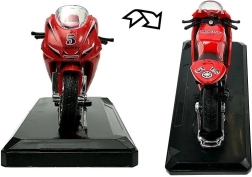 Das Modell begeistert mit Funktionen: Beim Drücken des hinteren Teils ertönen Sound-Signale, es verfügt über beweglichen Lenker und dank Schwungrad fährt es nach vorne – einfach nach hinten ziehen. Enthalten ist ein abnehmbarer Ständer/Sockel für sicheres Ausstellen.