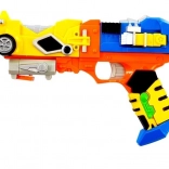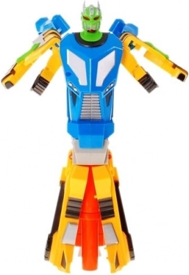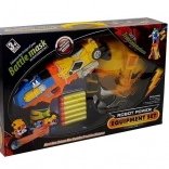 Das Spielzeug besteht aus hochwertigem, geprüftem Kunststoff, hat keine scharfen Kanten und erfüllt die Normen CE und EN 71. Außerdem lässt sich der Blaster zerlegen und in einen Roboter verwandeln, was die Spiel- und Storymöglichkeiten erweitert.