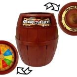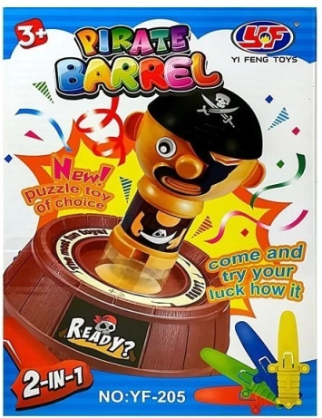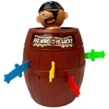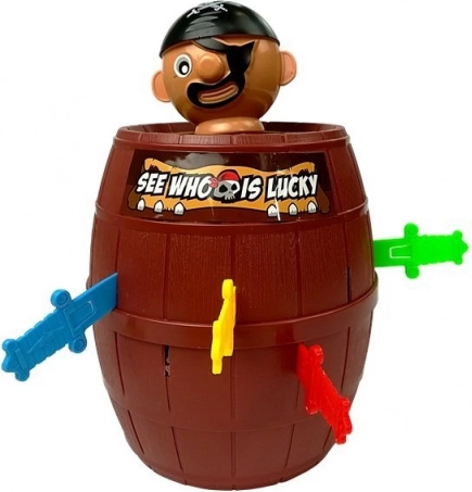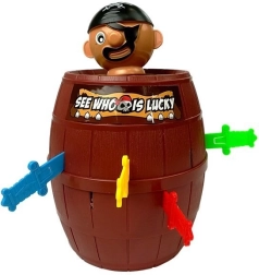 Dieses fröhliche Piratenspiel unterhält Kinder und Erwachsene gleichermaßen. Setzt den Piraten ins Fass, schiebt nach und nach Stäbchen/Schwerter hinein und beobachtet, bei wem der Pirat herausspringt. Einfache Prinzipien, schnelle Runden und jede Menge Spaß machen dieses Spiel zur idealen Wahl für Familienspieleabende und Kinderpartys.