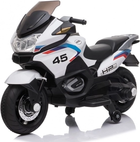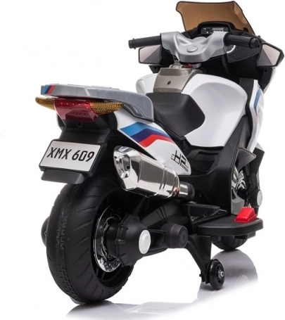 Das weiße Kinderakku-Motorrad XMX609 ist ideal für kleine Rennfahrer. Dieses sportliche Modell ist so gestaltet, dass es durch seine ungewöhnliche Farbgebung und Konstruktion auffällt. Es ist mit detaillierten Modellabzeichen verziert, die ein modernes Aussehen verleihen.