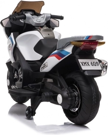Das Motorrad ist aus langlebigem ABS-Kunststoff gefertigt, enthält Imitate von verchromten Elementen und ist mit Seitenrädern für leichteres Ausbalancieren kleiner Fahrer ausgestattet. Das Fahren auf diesem Motorrad ist einfach und spaßig.