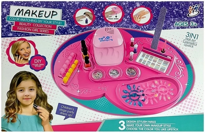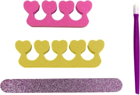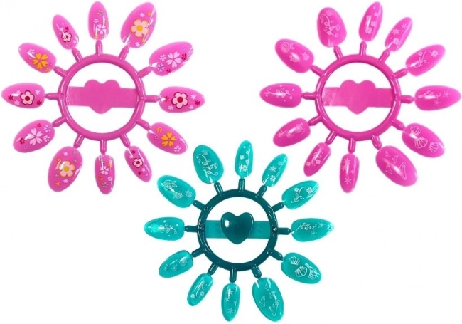 Nagelpflege-Set für Kinder, das völlig sicher und ungiftig ist. Enthält eine UV-Lampe für schnelles Trocknen der Lacke und verschiedene dekorative Elemente für kreatives Nageldesign.